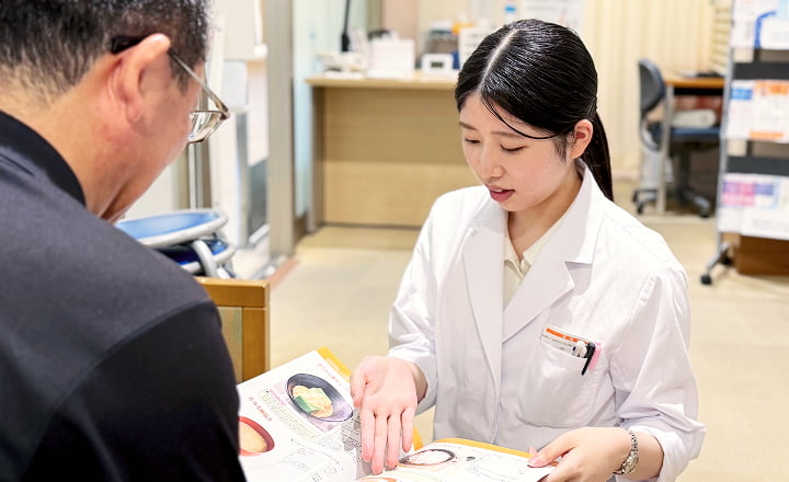 現在飲まれているお薬の内容を確認します。また、手術や検査で中止しなければいけない薬があった際に、いつから飲んではいけないのか、中止する理由などを説明します。
